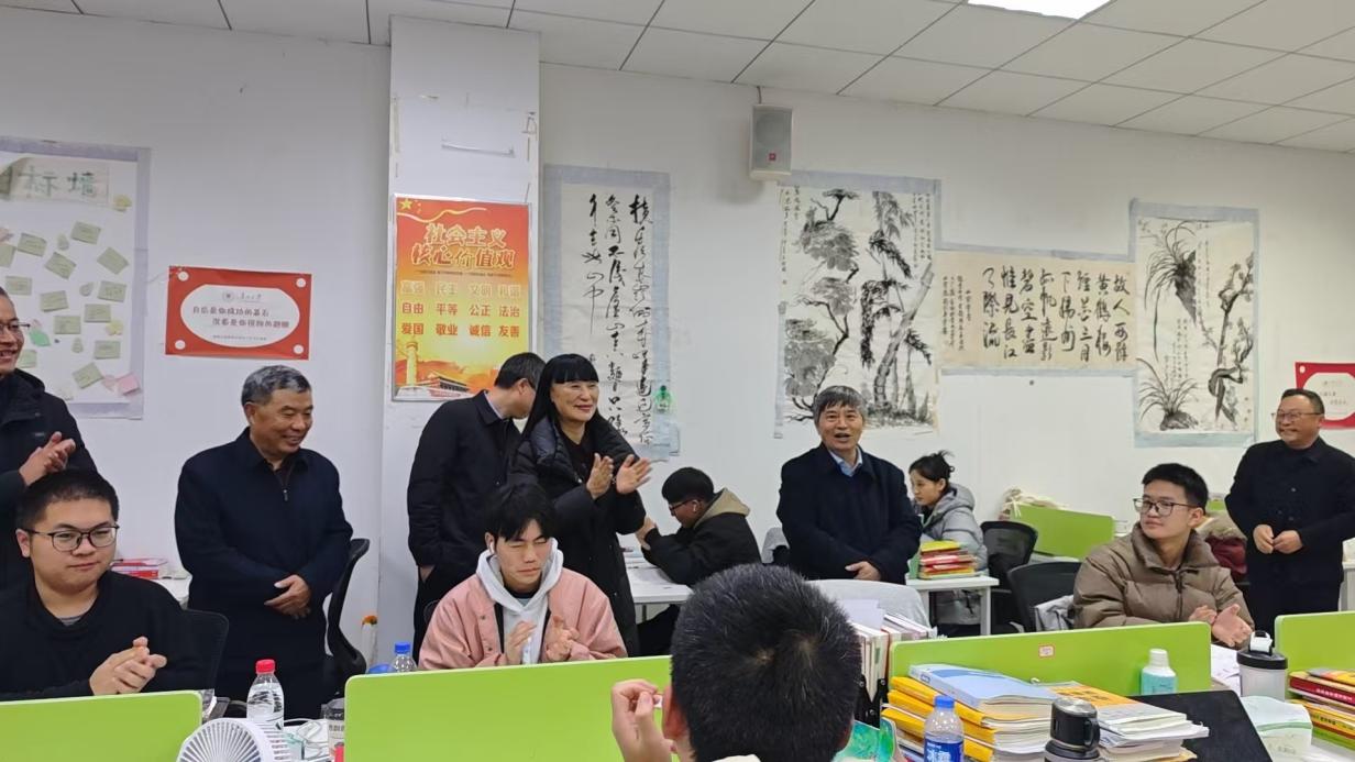 12月15日晚,校领导宋宝安、彭洁、骆长江、张大林、向嵩来到我院301考研自习室,亲切慰问正在全力冲刺的考研学子们,为大家送上温暖的关怀与真挚的祝福。