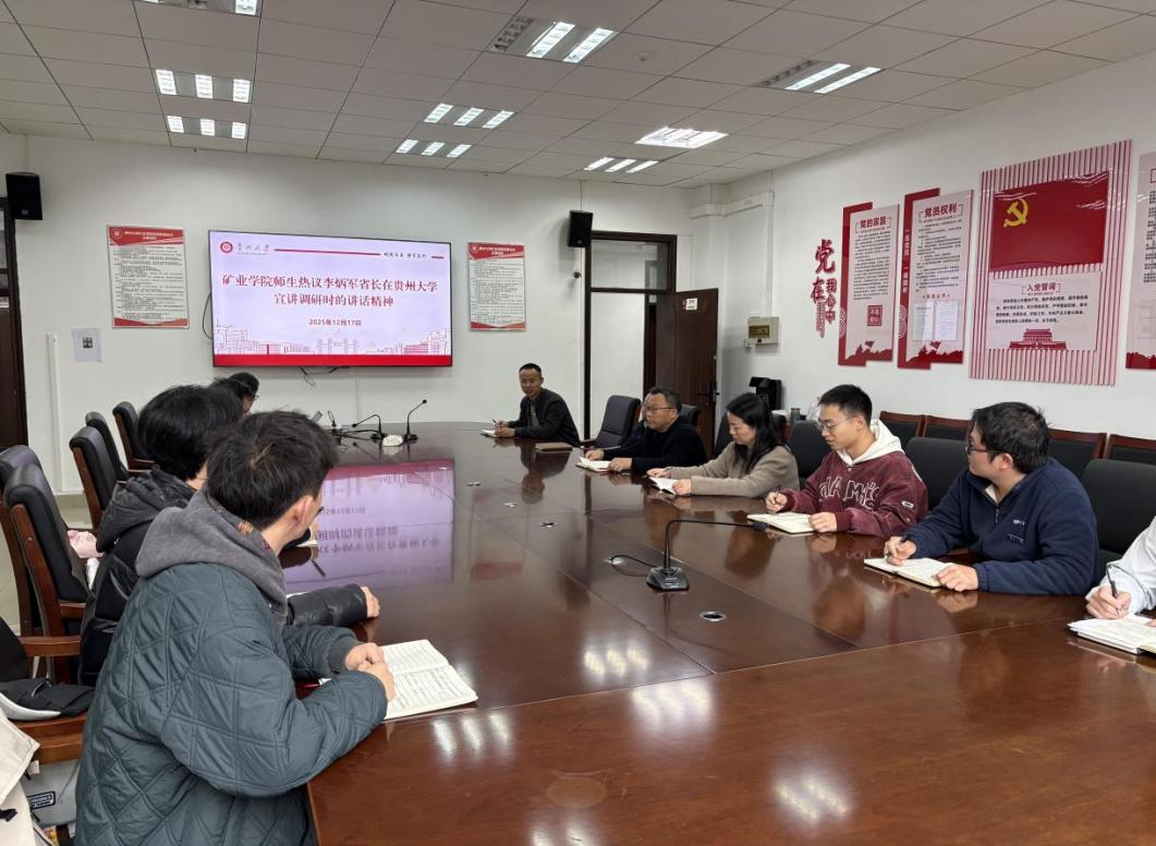 左宇军(矿业学院院长):省委副书记、省长李炳军的重要讲话,为我们扎根贵州、服务“富矿精开”战略指明了方向。矿业学院必须担当作为:一要立德树人,培养吃苦耐劳、勇于实践的矿业英才;二要聚焦深部开采、智能矿山等关键领域攻坚克难;三要推动成果转化,深化校企合作,将论文写在贵州大地上,让我们将讲话精神内化于心、外化于行,为贵州高质量发展贡献坚实的矿业力量!