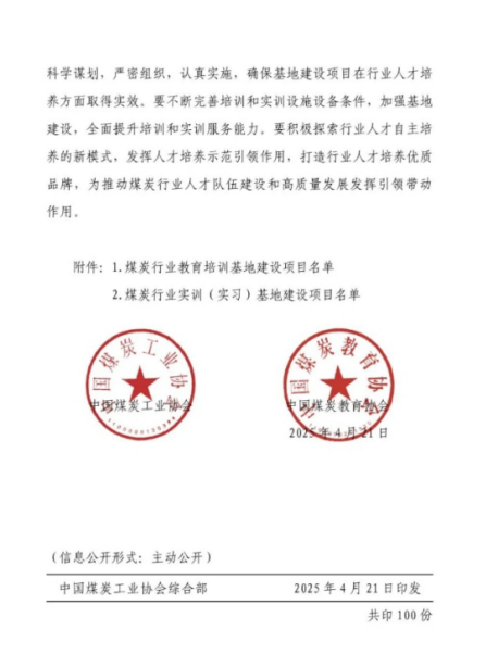 下一步,学院将以此次入选煤炭行业教育培训基地建设项目为契机,进一步整合学校学科专业资源,持续汇聚优质教育教学力量,深化产教融合,加强校企协同,优化实训条件,努力将基地建设成为国内一流的行业培训高地与煤炭领域示范标杆,持续扩大教育培训规模与影响力,为我国煤炭行业高质量发展提供坚实的人才支撑和智力支持。