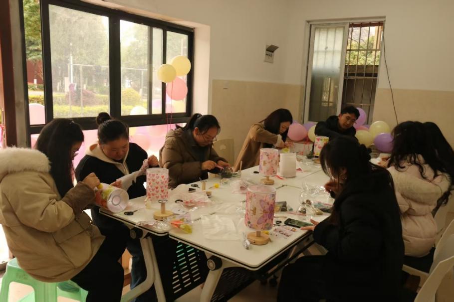 活动现场,多肉植物、小夜灯配件等材料整齐陈列,工作人员细致讲解绿植养护技巧与小夜灯组装方法。同学们热情投入,精心制作:绿植区内,填土、定植、装饰,将春日生机定格于方寸之间;DIY区里,拼接灯座、点缀配饰,一盏盏独具创意的小夜灯渐次成型。欢声笑语中,大家交流创意、分享技巧,既放松了身心,也拉近了彼此距离。