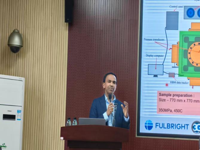 4月23日,贵州大学溪山矿业论坛系列讲座在励业楼535会议室举行。澳大利亚莫纳什大学地球深部能源研究实验室主任,中国工程院外籍院士,澳大利亚技术科学与工程院院士和英国皇家工程院院士Ranjith PG(兰吉特·帕伽玛·加米奇)教授受邀作题为“能量释放速率可控原位矿物开采:SREMA(Slow Releasing Energy Material Agent)技术体系”的专题学术讲座。矿业学院党委书记凃华君、副院长李波波出席本次讲座。矿业学院各教研室教师与专业学生代表到场聆听并参与交流。讲座由采矿工程教研室副主任裴鹏教授主持。